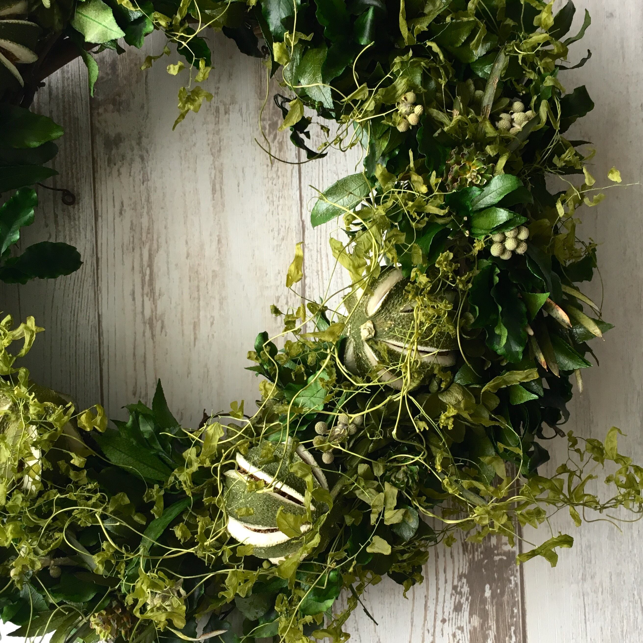 ライムボールを使ったグリーンたっぷりのリースです。
